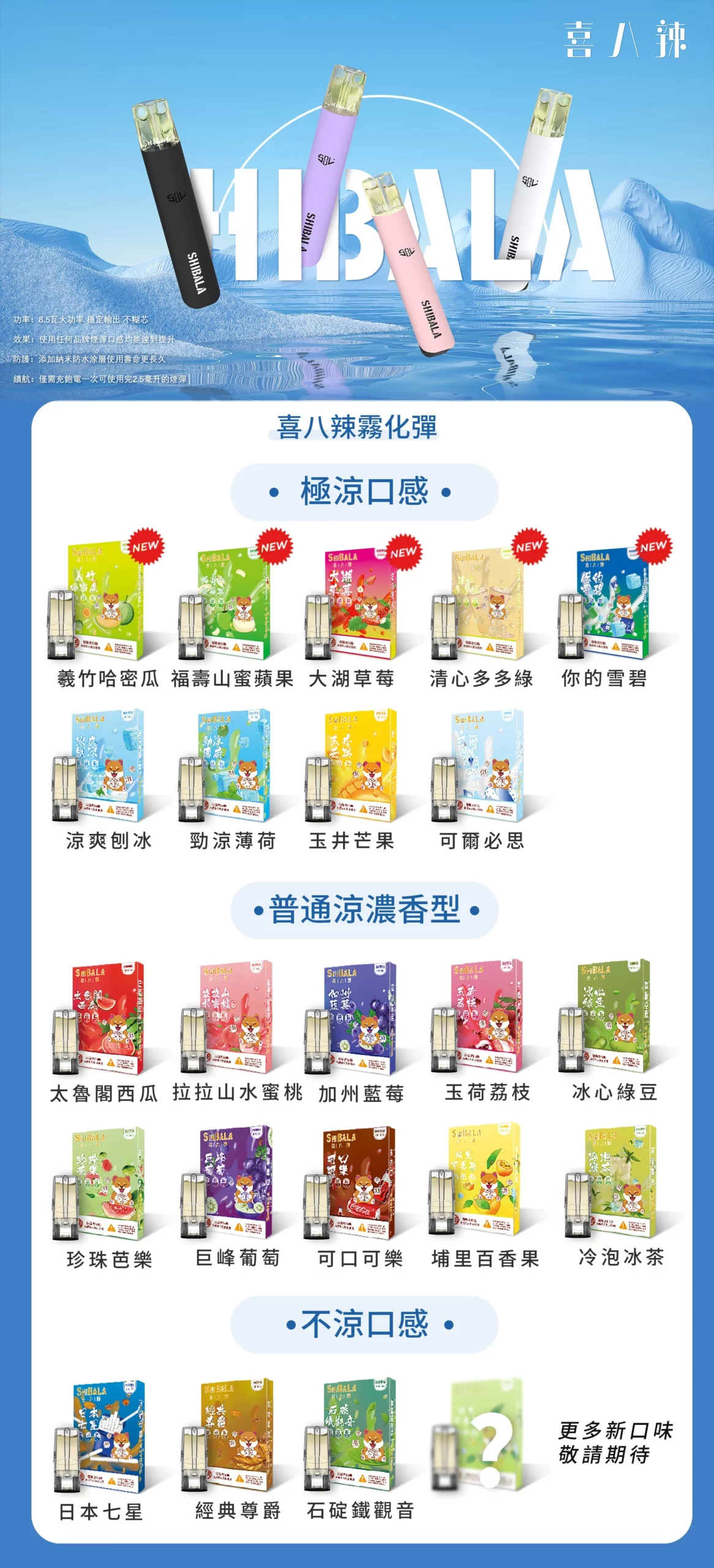 喜八辣一代煙彈是一款結合時尚造型與強烈風格的封閉式電子煙煙彈,專為喜八辣主機所設計,並支援多種主流一代通用主機如 RELX、ILIA、SP2、KIS5 等。每顆煙彈均採用高品質尼古丁鹽製成,濃郁順喉、口感穩定。搭配多種果香、茶香、薄荷等豐富口味,帶來層次感十足的吸煙體驗。