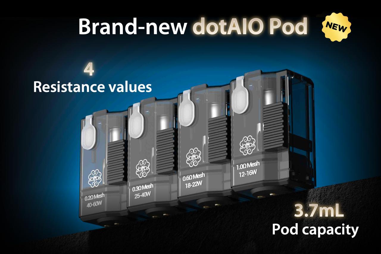 • 全新 dotAIO Pod V3:1.0Ω (12-16W) 、0.6Ω (18-22W)。