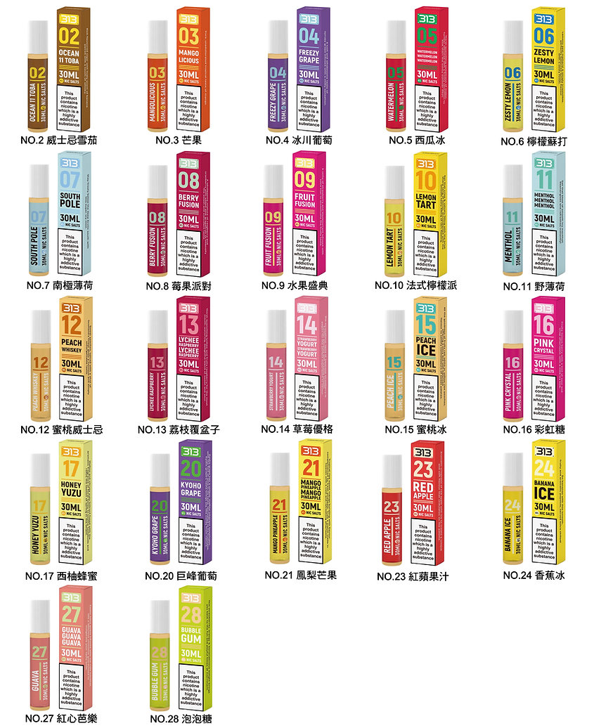 Airscream 313 系列電子煙油,以豐富多樣的口味編號系統為特色,包含經典煙草調、果香系、甜點風味與高涼度薄荷選擇,深受口糧型玩家喜愛。每款煙油均為 40MG 高濃度鹽油設計,特別適合需要快速滿足感的小煙設備使用者。