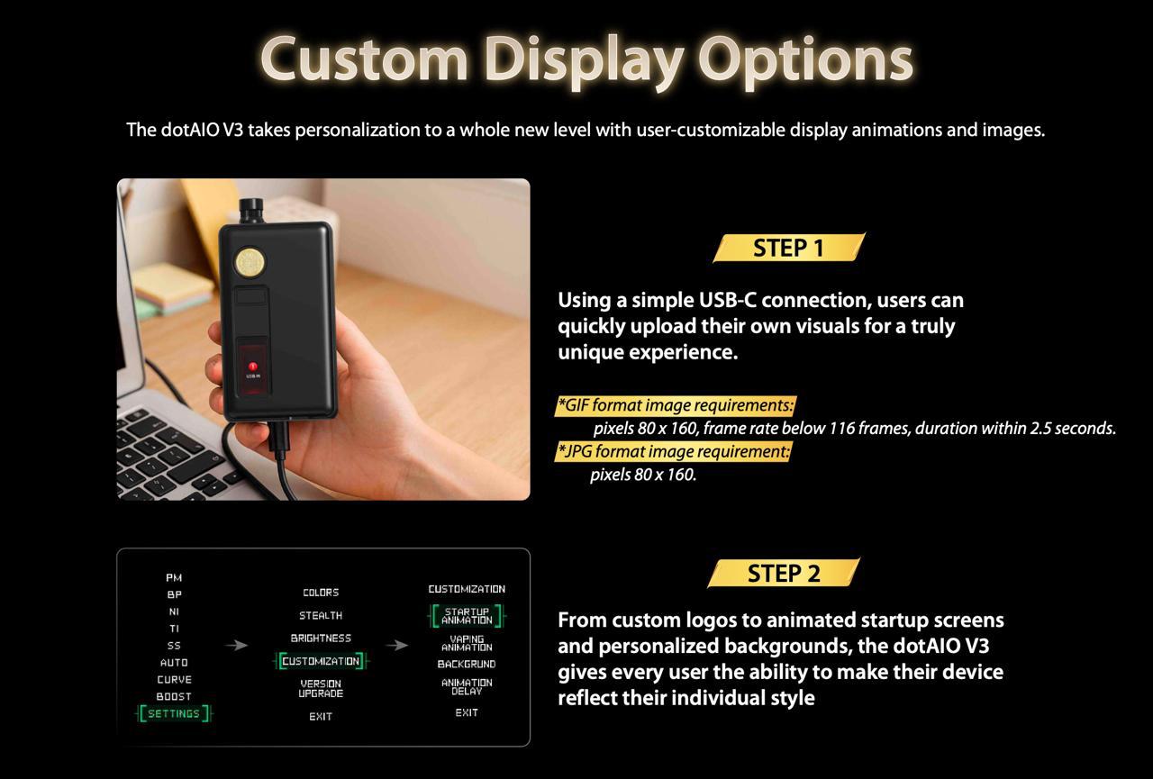 使用者可透過 USB-C 直接上傳 GIF(80×100 幀)或 JPG(80×160)圖片,打造完全屬於自己的開機動畫或 UI 顯示。這是 dotAIO 系列首次開放個人化螢幕主題,也讓 V3 適合追求獨特風格與高度客製化的族群。