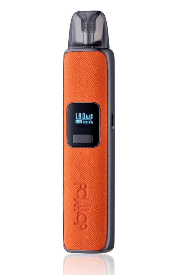 橘色款 Dotpod Pro 是整個系列中最具活力與辨識度的配色。鮮亮的橘色皮革側邊搭配鋅合金銀框,視覺效果醒目有型,特別適合喜歡亮色系、強調個人風格的電子煙玩家。無論搭配街頭穿搭或潮流配件,這台橘色主機都是吸睛焦點。